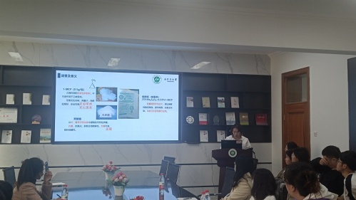 交流会上,新进教师杜莹琳以《基于全蛋白组结构筛选策略鉴定植物甾醇合成途径中的C-3酮基甾醇还原酶》为主题,进行了交流,生动讲解了基于全蛋白组结构筛选技术原理和应用;2020级食品科学与工程专业在读研究生张盼玲围绕《评估乳酸菌发酵对鹰嘴豆豆浆的质量、挥发性香气物质及代谢物的影响》进行汇报,详细讲述了目前发现的乳酸菌发酵对鹰嘴豆豆浆各方面的影响。2021级食品科学与工程专业研究生孙佳莹以《不同保鲜处理对新疆赛买提杏贮藏品质的影响》为主题,进行了交流,进一步剖析了不同保鲜处理方法及其对果实贮藏性的影响。