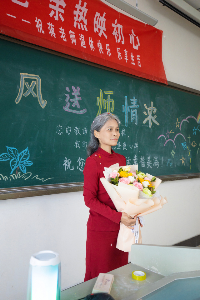 欢送会的另一个会场安排了别开生面的“最后一堂课”。4月24日,2020级食品质量与安全专业学生为蒋老师主讲的食品免疫学课准备了一个惊喜。当蒋老师推开教室门的那一刻,礼花喷洒,同学们跟着鼓掌欢呼,献上鲜花,全体学生起立为老师朗诵诗词致谢,共话师恩情深。现场有同学将这一场景记录在抖音发布,“有温度”的“仪式感”引发无数人动容,同时被新华社、光明网等各大媒体相继转发,最高点赞数突破12万。