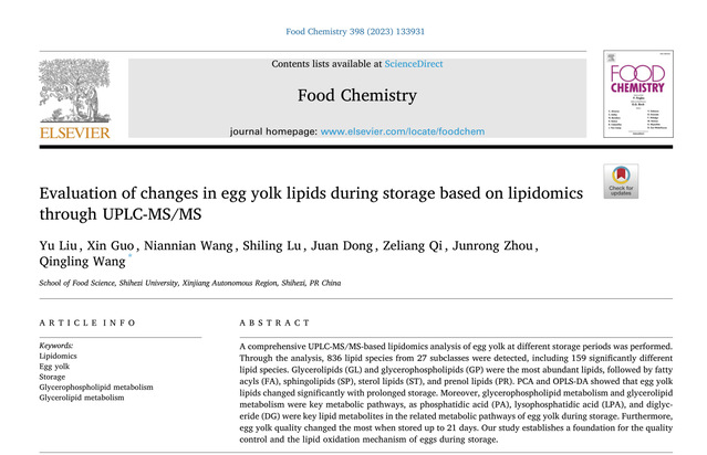 【学术前沿】基于超高效液相色谱-质谱联用技术的脂质组学评价贮藏过程中蛋黄脂质的变化