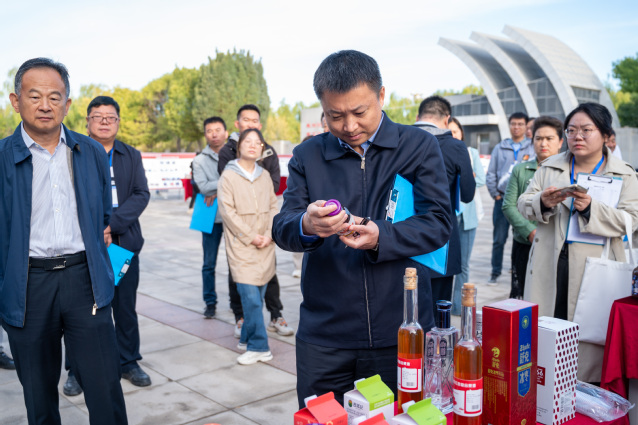 在展区内,图木舒克枣科技小院驻派研究生彭波介绍到,在食品学院单春会教授团队和博士服务团的指导下,科技小院围绕红枣精深加工和综合利用进行研究,着眼于红枣增产不增收和企业精深加工科技水平不足等实际困难,积极推进兵地深度融合和科技成果转化,形成了以红枣为主要原料的益生菌发酵饮料、果酒、果醋、白兰地等系列精深加工产品,目前已完成四款产品的中试生产,协助企业完成4份工艺技术规程和产品标准的制定,开展技术服务7次,培养技术骨干15余人。