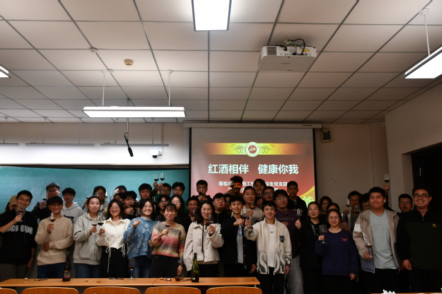 为传播葡萄酒文化,丰富同学们的校园文化生活,11月3日,葡萄与葡萄酒工程系本科生党支部和石河子大学葡萄酒俱乐部在博学楼A315联合举办了“红酒相伴,健康你我”主题党日活动。葡萄与葡萄酒工程系本科生党支部书记牛见明以及来自全校的60余位同学参加了本次活动。活动邀请了葡萄酒俱乐部的张会佳与张李晶同学为大家讲解葡萄酒的相关文化。