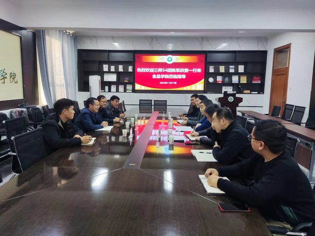 11月17日,兵团第三师五十四团党委书记、政委陈军带队来bat365在线中文官方网站座谈交流。食品学院党委书记程卫东、副院长魏长庆、未来食品中心负责人周中凯教授、农学院王家平副教授及师生代表参加座谈会。