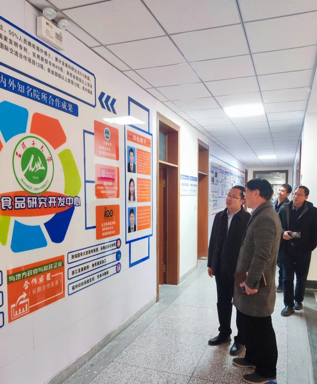 会后,程卫东邀请陈军一行参观了食品学院科研产品展览室和各研究中心实验室。在参观过程中,双方就深入合作进行了进一步的交流和探讨,并表示将积极推进合作进程,共同为新疆特色农产品的开发和应用做出贡献。