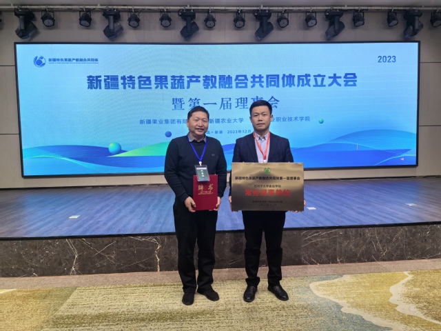12月1日,新疆特色果蔬产教融合共同体成立大会暨第一届理事会在新疆农业职业技术学院召开,本次会议由新疆果业集团有限公司、新疆农业大学和新疆农业职业技术学院联合主办,来自疆内外果蔬行业龙头企业、高等院校、科研机构、行业协会和上下游企业等100余家单位参加会议。新疆维吾尔自治区农业农村厅、教育厅、林草局、供销社等有关部门领导到会并致辞。