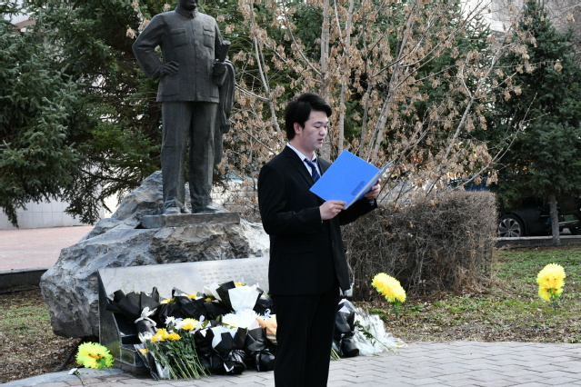 祭扫活动在正午的阳光中拉开序幕。学生代表危腾飞首先向同学们讲述了张仲瀚将军的事迹,他讲到“张仲瀚将军是中国近现代历史上的重要人物,尤其在中国新疆的军事和农业开发史上占有举足轻重的地位,张仲瀚将军不仅是一位杰出的军事将领,也是新疆军垦事业的开拓者和社会主义建设的积极推动者。他的贡献对新疆乃至整个中国的现代化进程产生了深远影响。因此他被誉为“新疆军垦第一人”。