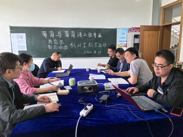 411日,葡萄学与葡萄酒学教研室联合组织了2023-2024学年第一学期第四次教研活动,本次研讨内容为《葡萄酒鉴赏与文化》习题库勘误,食品学院书记程卫东、教办王建程督导了本次教研活动。