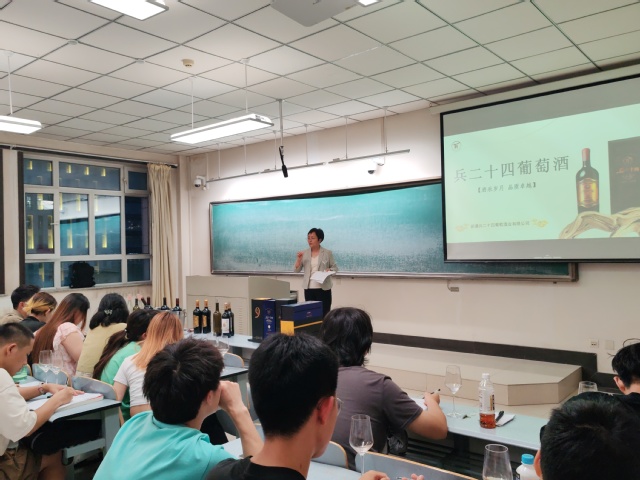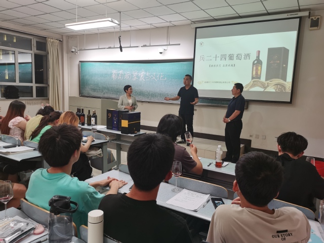 王平从中国葡萄酒的起源开始,讲述了汉朝、魏晋南北朝、唐宋以及元明清时期的葡萄酒历史与文化的兴衰演替。章睿介绍了南疆焉耆盆地产区特点和兵二十四酒庄的发展历程,胡玉红从观色、闻香、品尝和整体评价四个品鉴流程,带领同学们品尝了来自兵二十四酒庄的天赐、雪韵、军垦、兵岁月、冰小淘等系列葡萄酒。全体同学认真操作品鉴流程、填写了品鉴酒评表,并和授课老师们进行了热情的交流,同学们纷纷表示这种授课方式非常有益于拓展视野、提升品鉴技能,同时提升了对国产葡萄酒品质的了解和信心。