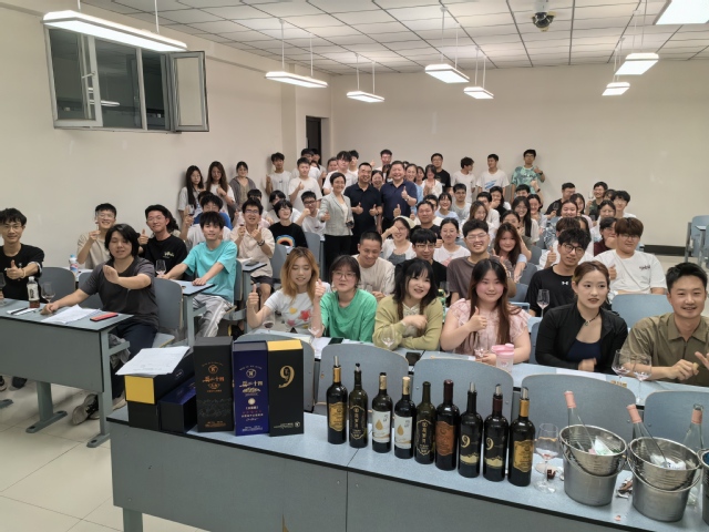食品学院葡萄与葡萄酒工程系开设《葡萄酒鉴赏与文化》课程是石河子大学最受欢迎的通识选修课之一,本学期开设了5个班300人,课程涵盖了开课酒会、葡萄酒基础知识与品鉴、葡萄酒历史与文化、葡萄品种与栽培、葡萄酒风土与酿造、葡萄酒营养与健康、葡萄酒投资以及结课酒会等诸多内容,每次课都是以“1+1”的教学模式开展,即1学时理论授课和1学时葡萄酒品尝实践,真正做到了“堂堂学理论,节节品美酒”,整个教学过程将理论和实践紧密结合。同时,课程组坚持围绕校企产教融合、创新协同育人机制,持续设计组织了企业家进课堂授课,使得课程知识体系更加完整、更加贴合产业现状,课程得到了张裕巴保男爵酒庄、沙地葡萄酒庄、兵二十四酒庄、中信尼雅葡萄酒业公司等企业的支持。