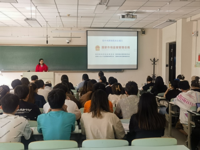 任玲从事食品质检行业20余年,具有丰富的食品质量检验与管理经验。在课堂上,任玲结合企业管理案例和同学们分享了乳品(酸奶、牛奶等)在生产过程中,质量控制和检验、审核、认证等方面的内容。在课堂提问与互动环节,同学们纷纷就食品企业生产管理、质量控制等案例事件展开讨论,课堂全程气氛热烈,也引发了同学们对食品安全生产、注重食品质量的思考。