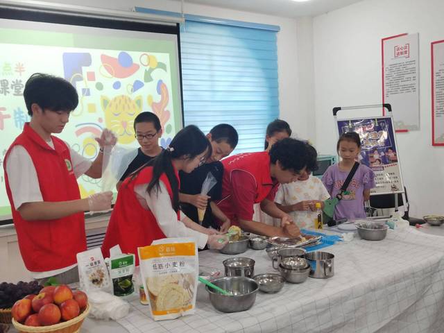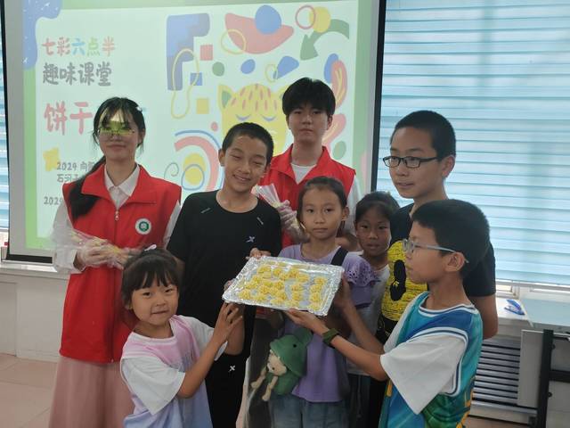 实践团成员们还依托31社区“七彩六点半”特色课堂,与社区居家青少年一同探秘食品科学小实验,激发食品科学探索的种子。