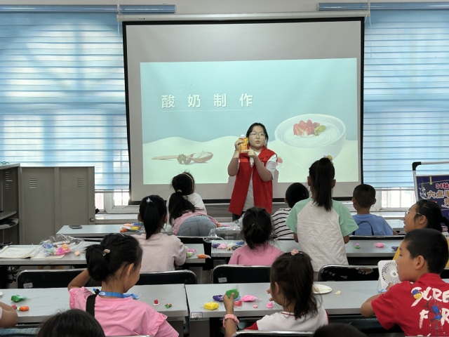 为树立大食物观,将珍惜食物的价值观牢牢植根于社区青少年的心中,使之内化于心,外化于行,bat365在线中文官方网站赴向阳街道31社区暑期“三下乡”教育关爱服务团于7月12日开展了“七彩红柳六点半”趣味课堂之酸奶制作等一系列的食品科普活动。