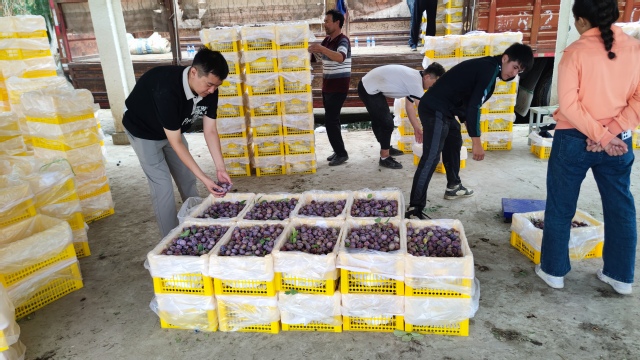 在喀什东风农场,团队进一步指导了西梅的采摘方法,强调保留果粉和果柄的重要性以延长保鲜期。此次交流不仅解决了生产中的实际难题,提升了产品质量,还加强了科研团队与果农、企业的联系,推动了哈密、喀什两地西梅产业的发展。