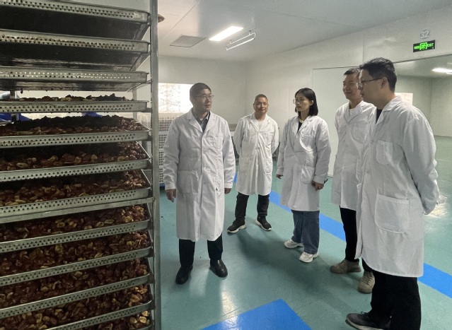 在十三师,陈国刚深入黄田农场喜折惠农产品加工基地,对哈密瓜干的干燥工艺及西梅保鲜技术进行了详细指导,针对“哈密瓜干自然风干霉变及卫生”问题,提出通过冷冻干燥配合蒸汽回软技术最大程度保留哈密瓜原有风味和营养成分。企业负责人徐勇表示“通过这次交流培训,有效提升了基地技术人员关于果蔬加工及贮藏保鲜方面的技术水平,为基地农产品精深加工及产品开发方向拓展了新的思路。”