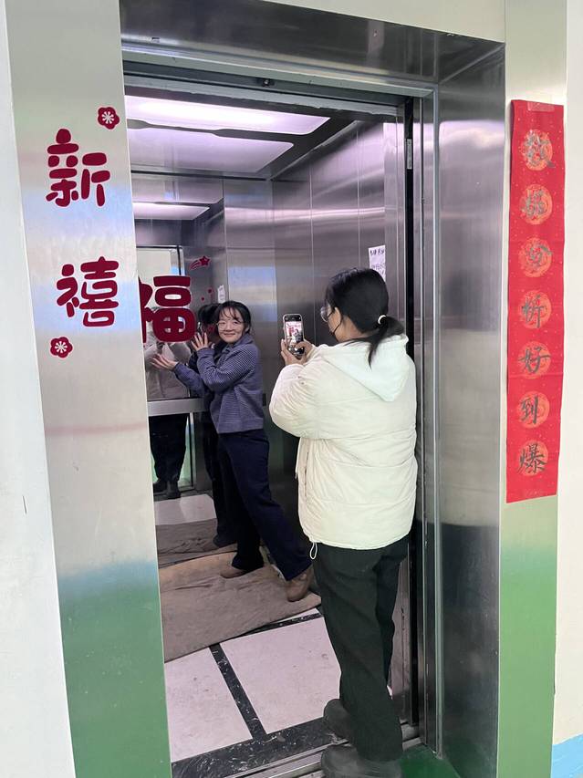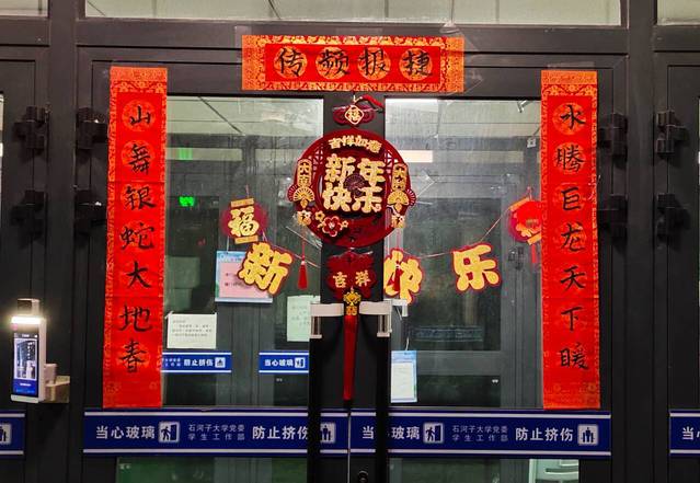 目光移向大门两侧,喜庆的对联和红彤彤的灯笼高高悬挂,墨香与喜庆交织,浓浓的年味扑面而来,让我不由自主地加快了脚步,想要探寻这楼里更多的新年惊喜。步入大厅,精美的装饰物错落有致地装点着四周。彩色的丝带轻盈飘舞,精致的小挂件闪闪发光,它们相互映衬,营造出一种温馨欢快的氛围。再看那电梯间,红色福字挂件醒目而耀眼,那一抹鲜艳的红传递着最质朴也最真挚的新年祝愿,让人的内心满是温暖。