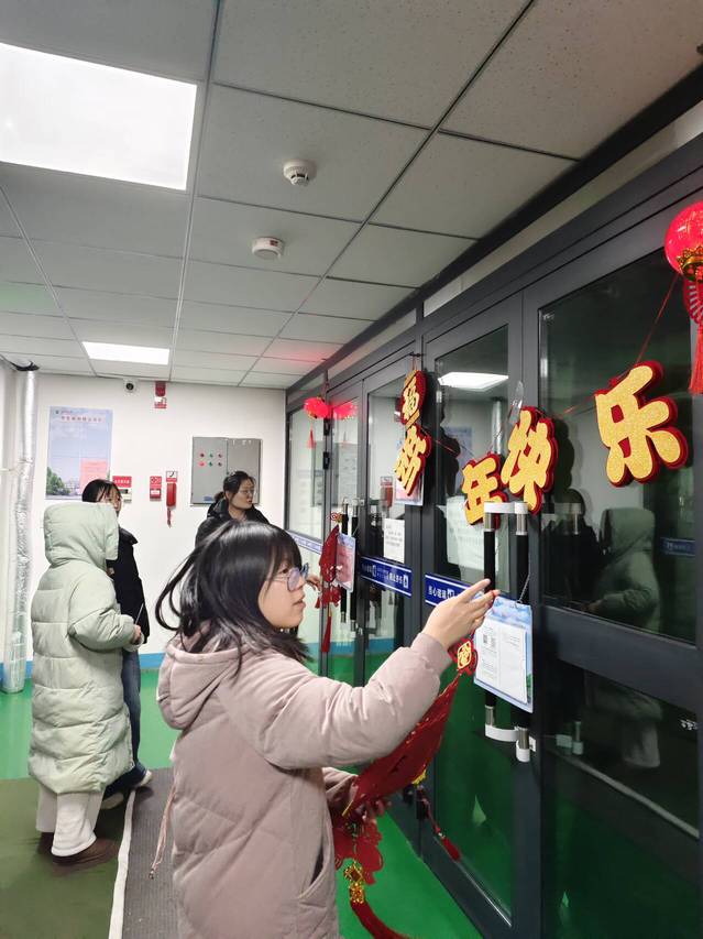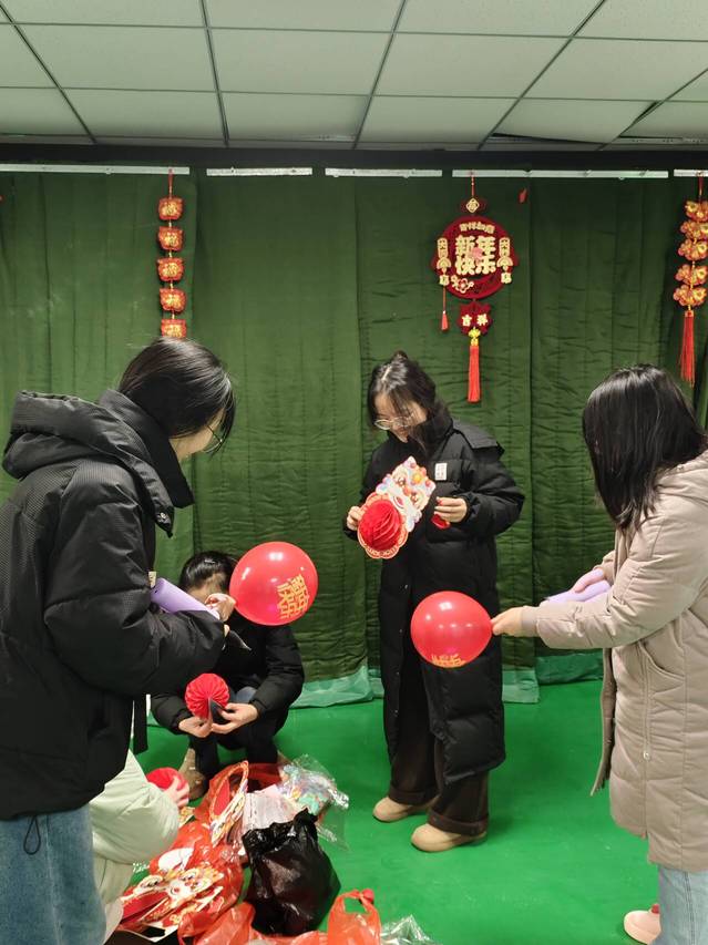“当我像往常一样走进宿舍楼,瞬间被眼前的景象所打动。缤纷的气球与璀璨的灯串相互缠绕,瞬间点亮了整个空间,也点燃了我对新年的期待,看到这些装饰,新年的氛围一下子就浓了起来,感觉特别温暖。”余丽冰同学激动地说。