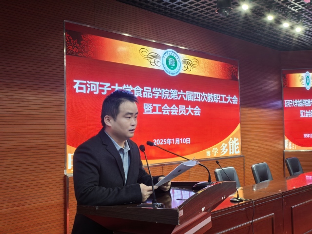 1月10日,食品学院教职工大会暨工会会员大会在北区大会堂学术报告厅召开。此次大会旨在回顾过去一年的工作成果,规划新一年的发展蓝图,会议由党委副书记、工会主席雷建鹏主持。