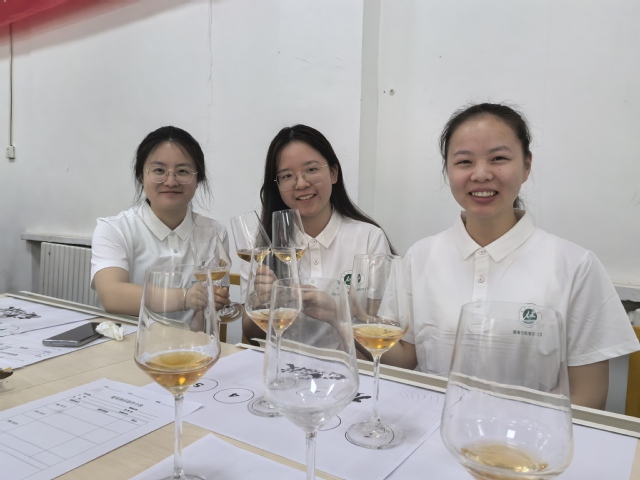 在品鉴环节中,石河子大学葡萄与葡萄酒工程系的专业老师带领着同学们从视觉、嗅觉和味觉三个维度品鉴了包括世外梅林香柚青梅果酒、冰青青梅果酒、舒醺牌巧克力威士忌梅酒等在内的六款不同风格的梅酒,同学们轻轻晃动手中的酒杯,观察青梅果酒澄澈的色泽,感受其清新的香气以及青梅果酒在味蕾上绽放出的独特风味。大家纷纷表示,此次品鉴不仅拓宽了专业视野,更激发了对传统果酒现代化发展的思考。