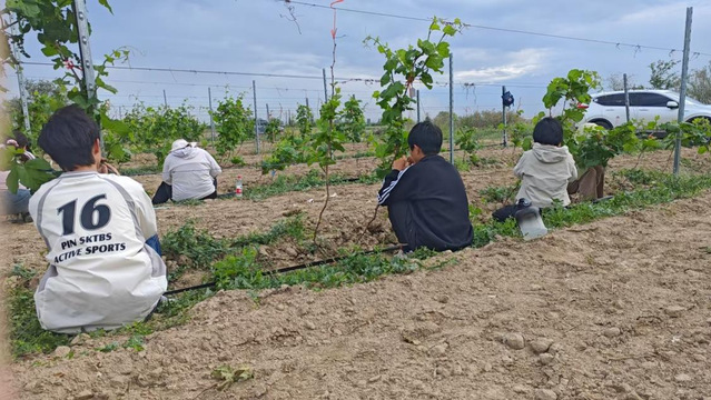 5月10日,bat365在线中文官方网站葡萄与葡萄酒工程专业的8名大一学子走进中信国安酿酒葡萄植株培育基地,参加葡萄杂交育种实践。本次实践选取了抗寒性突出的北冰红与风味独特的紫梦葡萄作为母本,同时以香气浓郁的柔丁香、单宁细腻的美乐和甜度极高的小芒森葡萄作为父本,通过人工去雄受粉技术进行创新育种探索。
