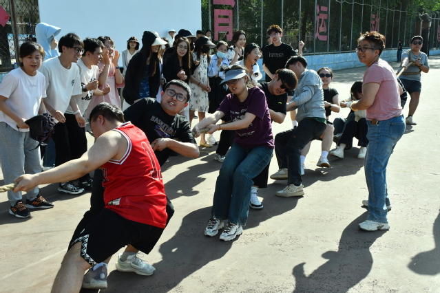 压轴的拔河争霸赛将全场热情点燃。各队派出10人队伍,随着裁判哨响,双方队员紧握长绳、身体后倾,“一二!一二!”的呐喊声响彻场地。即使手掌磨红、汗水浸透衣衫,队员们仍咬牙坚持,落后队伍也毫不松懈,场边啦啦队加油声浪一阵高过一阵。决胜局中,两队僵持近1分钟,长绳中央红绸左右摇摆,最终红绸越过胜负线时,胜利方欢呼雀跃,失利方也主动向对手祝贺,展现了“友谊第一,比赛第二”的体育精神。