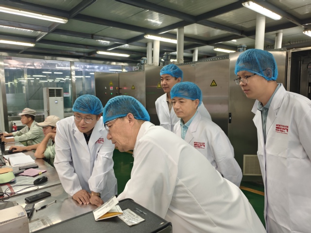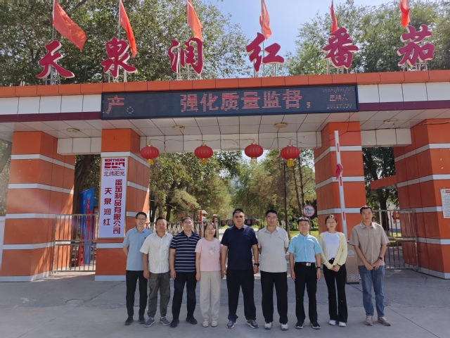 2025年8月23日,兵团特聘专家、中国农业大学曹建康教授带领石河子大学果蔬贮藏保鲜团队,赴新疆生产建设兵团第七师开展番茄加工产业调研与技术指导,先后走访新疆农垦北纬阳光番茄制品有限公司和天泉润红番茄制品有限公司,并就番茄酱生产工艺开展现场交流与指导。
