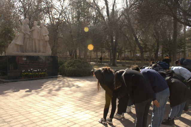 在党支部书记孙鹏程的带领下,同志们分别来到大学北区周恩来总理和张仲翰将军的雕像前怀着思念与崇敬的心情肃立默哀。默哀后,瞻仰烈士墓碑,同志们排队向英烈敬献鲜花、寄托思念,深情凭吊烈士英魂,深切缅怀他们的丰功伟绩,表达对先辈沉痛的哀悼和无尽的崇敬之情。