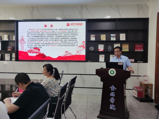为全面系统深入学习贯彻习近平新时代中国特色社会主义思想,6月6日下午,校党委常委、副校长童军茂来到食品学院为食品科学与工程系教师党支部党员讲授题为“深入学习习近平总书记关于教育的重要论述 着力写好新时代兵团高校培养人才的‘奋进之笔’”的主题教育专题党课。
