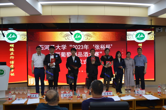 李玲副处长在致辞表示,石河子大学一直秉承着“一院一特色”的学科竞赛理念,此次“张裕杯”葡萄酒品酒大赛,是联合企业合办的“一专业一特色”的首次尝试,在校内引起师生的较大反响,希望葡萄酒品酒大赛越办越好、越办越丰富。进入决赛的18位学生在决赛环节,通过葡萄酒盲品、酒评撰写和综合陈述等专业环节,经过2个多小时的激烈角逐和现场评委专家的综合评定,周婷(2020级动物医学专业)、袁敬博(2021级药学专业)、高煜(2019级葡萄与葡萄酒工程专业)等3人获得特等奖,程姜琳(2020级水利水电工程专业)、汤子雄(2021级设施农业科学与工程专业)、张婉婷(2021级预防医学专业)、谭雅文(2021级汉语言文学专业)、钟晨晓(2019级葡萄与葡萄酒工程专业)等5人获得一等奖,其余10位同学获得二等奖、45位同学获得三等奖。张裕巴保男爵酒庄为大赛提供了特色葡萄酒、酒庄门票等作为奖品,与会领导、专家和嘉宾为获奖学生进行了颁奖。至此,历时50余天的石河子大学2023年“张裕杯”首届葡萄酒品酒大赛圆满闭幕。