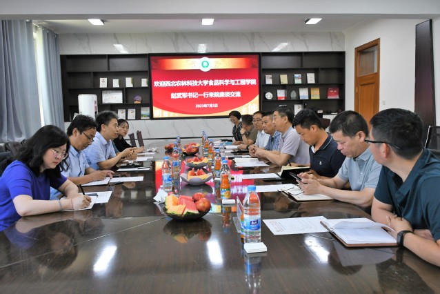 7月3日,西北农林科技大学食品科学与工程学院党委书记赵武军、副院长王云阳、食品科技系主任杜双奎、综合办公室主任严艳、教学秘书刘娜一行5人来到学院交流座谈。学院中层以上领导干部参加会议,党委书记程卫东主持。