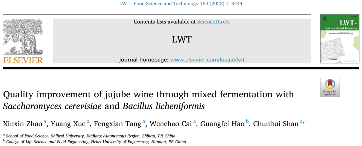 酿酒酵母和地衣芽孢杆菌混合发酵提高红枣酒品质的研究