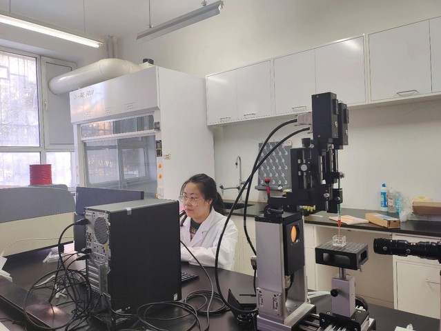 下午,陈鸿茹在主楼公共平台111实验室向在场的研究生们详细介绍了该仪器的结构特点,并亲自演示了其操作方法。研究生韩平、刘一博、刘笑笑、付旖旎等同学在陈鸿茹的指导下进行了为期2天的实操练习。