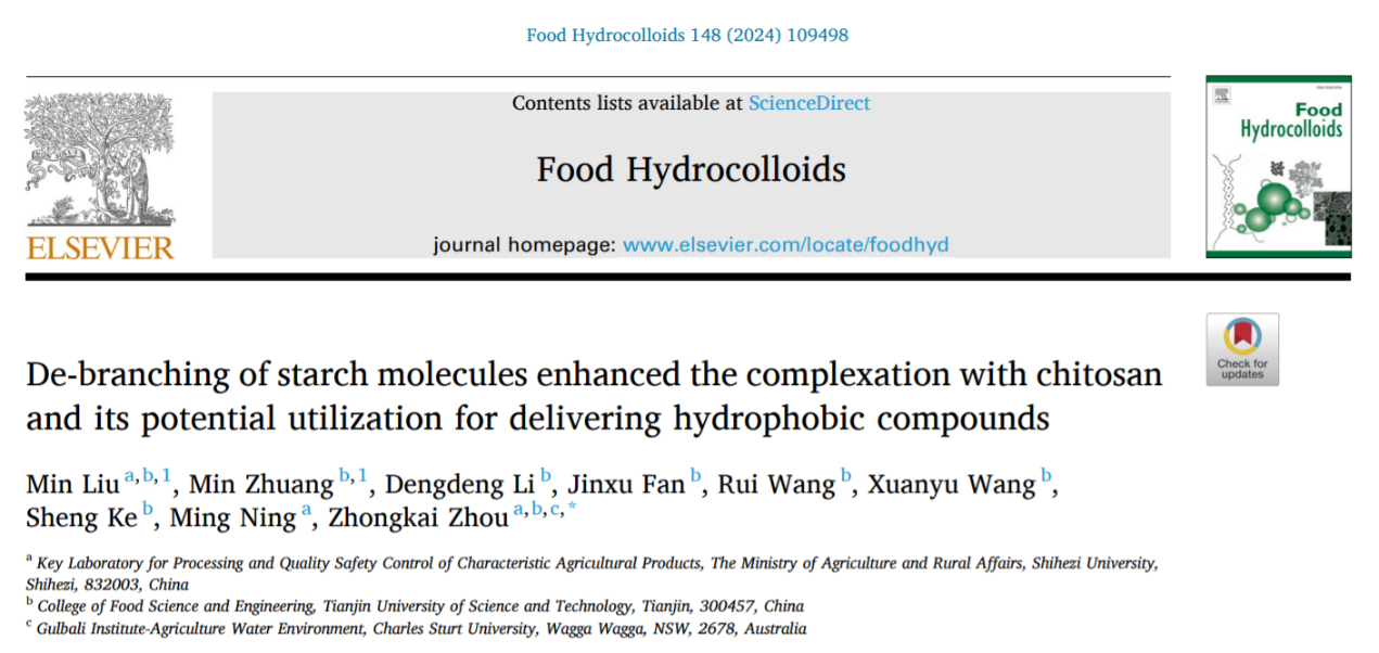 【学术前沿】淀粉分子脱支增强了与壳聚糖的络合作用及其在疏水化合物递送中的潜在应用