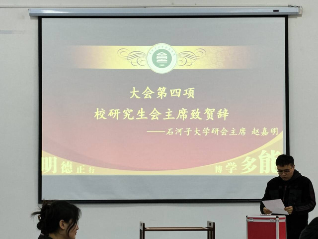 校研究生会主席团成员赵嘉明致辞,预祝食品学院第十四次研究生代表大会圆满成功。食品学院第十三届研究生会主席康宁进行述职汇报,总结了一年来食品学院研究生会工作情况,并寄语新一届研究生会做好服务奉献,助力食品学院更加出彩。主持人宣读第十三届优秀研分会干部,并祝贺他们在过去一年工作中取得的优异成绩。