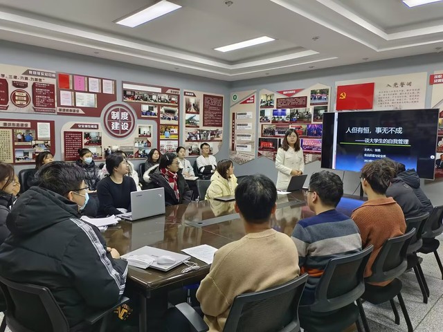 张艳以“人但有恒,事无不成”为主题,通过引用“曾国藩日课十二条”的案例,深入浅出地讲述了曾国藩如何进行日常自我管理的方法。她分享了自己对于大学生自我管理方面的见解,并鼓励大家向榜样看齐,高质量度过大学生活。