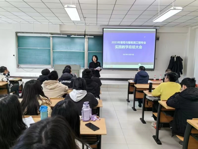 1221日,葡萄与葡萄酒工程系(简称葡工系)召开2023年度实践教学总结大会,食品学院副院长任亚梅出席会议,葡工系教师和学生参加会议。