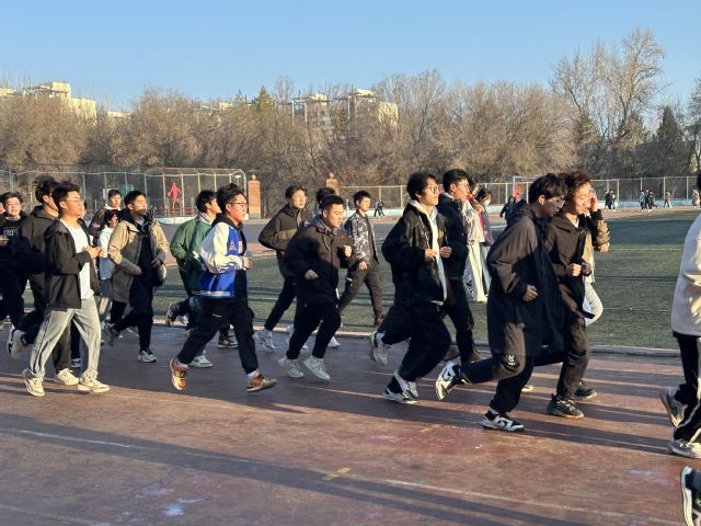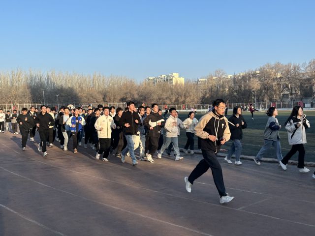 8时50分,2022、2023级全体同学们沐浴着清晨的阳光,在北区田径场集合,以饱满的热情和坚定的步伐,诠释着新时代青年的精神风貌。东方红日出,奋斗正当时。三圈统一跑步结束,各班同学在班委组织下继续有序进行速度跑、跳绳、拉伸等各项锻炼。