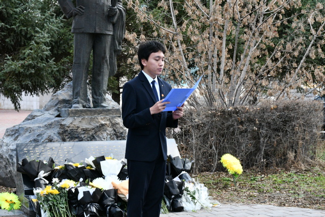 祭扫活动在正午的阳光中拉开序幕。学生代表危腾飞首先向同学们讲述了张仲瀚将军的事迹,他讲到“张仲瀚将军是中国近现代历史上的重要人物,尤其在中国新疆的军事和农业开发史上占有举足轻重的地位,张仲瀚将军不仅是一位杰出的军事将领,也是新疆军垦事业的开拓者和社会主义建设的积极推动者。他的贡献对新疆乃至整个中国的现代化进程产生了深远影响。因此他被誉为“新疆军垦第一人”。