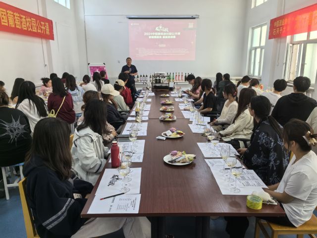 5月28日,中国酒业协会葡萄酒分会联合国内产区、代表性高校和企业共同举办“龙行高校”中国葡萄酒校园公开课第五讲活动,本堂公开课全国共有62所高校同步开课。食品学院联合文学艺术学院共同承办了本次石河子大学分会场活动,葡萄与葡萄酒工程专业、汉语言文学、美术学、环境设计等专业50余名学生参加活动。