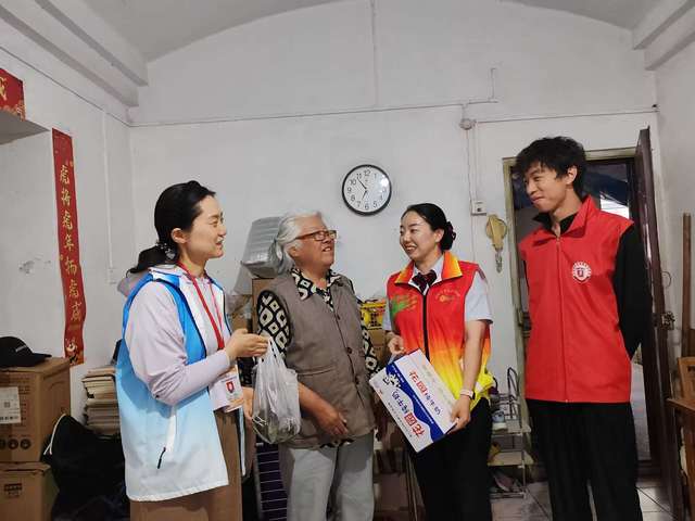 “大姨,过节好,这是我们包的粽子和社区过节给您的牛奶,请您收下!”志愿者们提着礼品、拎着粽子,挨家挨户前往社区重点关怀的老人家中,送去来自社区和青年人的一份温暖。