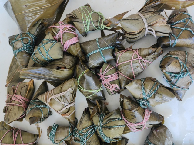 随后,参与者们迫不及待地拿起提前备好的糯米和粽叶,兴致勃勃地投入到包粽子的乐趣中。不一会儿,现场就堆满了形态各异、富有创意的粽子,每一个都散发着独特的魅力。在包粽子的同时,同学们还纷纷品尝了市面上各种口味的粽子,这些粽子或甜或咸,口感各异,让人大饱口福。当大家亲手包的粽子散发出阵阵诱人的香气时,整个活动现场被浓浓的节日氛围所包围,充满了温馨与欢乐。此外,大家还利用糯米制作了特色美食--甑糕。甑糕的精美造型和独特风味受到了大家的一致好评。