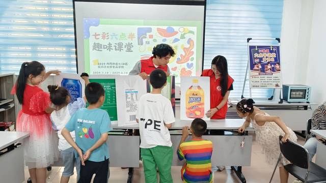 实践团成员们还依托31社区“七彩六点半”特色课堂,与社区居家青少年一同探秘食品科学小实验,激发食品科学探索的种子。