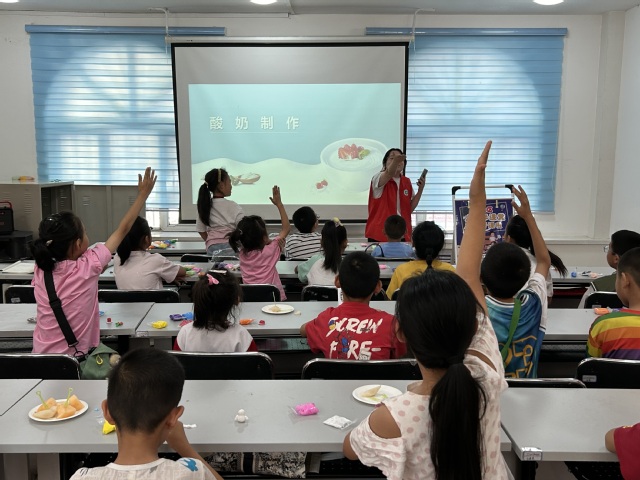 为树立大食物观,将珍惜食物的价值观牢牢植根于社区青少年的心中,使之内化于心,外化于行,bat365在线中文官方网站赴向阳街道31社区暑期“三下乡”教育关爱服务团于7月12日开展了“七彩红柳六点半”趣味课堂之酸奶制作等一系列的食品科普活动。