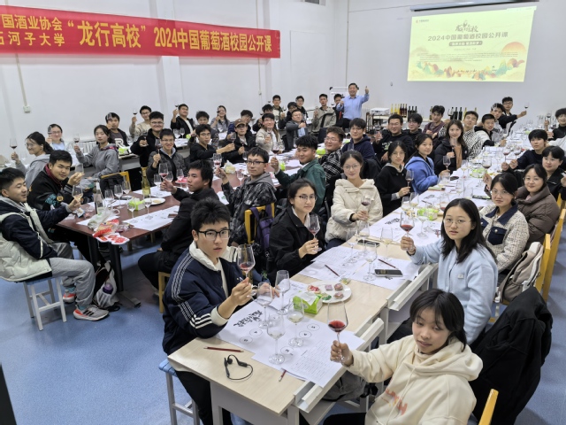 本次活动由中国酒业协会主办,以甘肃农业大学为主会场,食品学院葡萄与葡萄酒工程系本科生党支部联合葡萄酒俱乐部承办本次公开课的分会场。中国酒业协会葡萄酒分会秘书长火兴三,甘肃省酒类流通产业促进中心主任段治国,甘肃省酒业协会副会长兼秘书长李云,甘肃省葡萄酒产业协会副会长、省农业科学研究院研究员郝燕,甘肃农业大学党委常委、副校长滚双宝,甘肃农业大学教务处处长张文政,甘肃农业大学食品科学与工程学院党委书记王卫红、院长李永才、副书记马占军等出席活动。火兴三秘书长在致辞中对往期公开课进行了回顾,第1-7期公开课共品尝了30家企业无偿提供的43款产品,有68所高校参与合计304次活动,线下参与人数2.5万+,线上参与人数达42.6万人次。他说,未来公开课将在酒种的扩大化、参与学校的国际化、课件的多样化等方面持续改进和不懈探索。同时,中国酒业协会葡萄酒分会将陆续开展茅台葡萄酒杯大学生品酒职业技能大赛和中澳葡萄酒人才联合培养计划。希望同学们保持关注并积极参与,共同为中国葡萄酒事业的发展贡献力量。