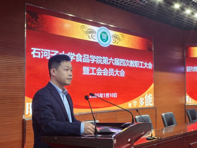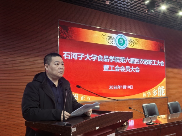 1月10日,食品学院教职工大会暨工会会员大会在北区大会堂学术报告厅召开。此次大会旨在回顾过去一年的工作成果,规划新一年的发展蓝图,会议由党委副书记、工会主席雷建鹏主持。