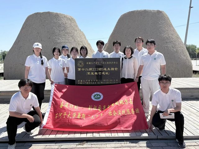 “土圆仓”始建于上世纪五六十年代,是兵团人修建的独特粮仓,曾是保障供给的生命线,如今便成为兵团人建设团场、开荒种田的历史印证。在这里,服务团成员们详细了解了“土圆仓”修建过程、使用方法以及修建“土圆仓”的历史背景和重要意义,亲身体会到了兵团人在艰苦条件下自力更生、艰苦奋斗的顽强意志。