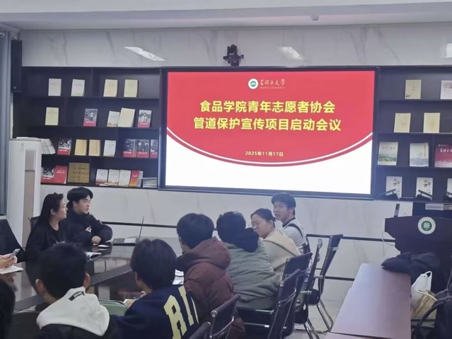 bat365在线中文官方网站青年志愿者协会组织申报的“管安同行”管道安全志愿队成功入选由团中央青年志愿者行动指导中心联合多家单位共同开展的2025年“少年儿童安全守护计划”管道保护宣传志愿服务项目,成为石河子大学唯一一支入选该国家级项目的大学生志愿服务团队,并于11月18日在食品学院主楼220会议室召开项目启动会议。