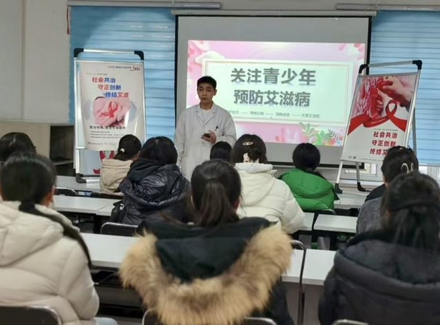 首先,王医生借助图文并茂的PPT,从艾滋病的基本知识入手,系统讲解了艾滋病的病原体、传播途径和病程发展。他特别指出,艾滋病病毒主要通过血液、性接触和母婴三种途径传播,而日常共同就餐、握手、拥抱等行为不会造成感染。王医生强调:“目前艾滋病虽无法根治,但通过规范治疗可有效控制病情,而预防仍是关键。”