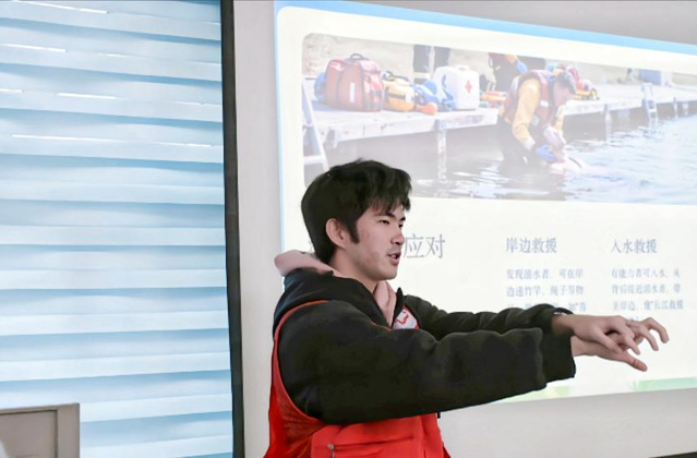 首先,志愿者王润涵同学围绕应急救援的核心概念、常见突发场景及科学应对方法展开详细讲解,通过火灾、溺水、地震等多个情景让居民们听的津津有味,学到了不少急救“干货”。